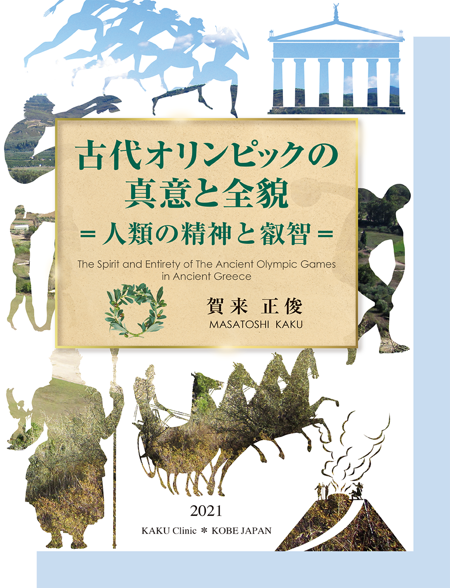 2021年3月、2020東京オリンピック・パラリンピックに先駆けて古代オリンピックの全てを解き明かした書籍を出版しました。本書は賀来正俊のライフワークである古代オリンピックについて9回の現地調査を含む約40 年間の研究で得られた貴重な発見や学術資料を満載してまとめたものです。内容は、スポーツのみならず芸術、教育、信仰、哲学、建築、植物、料理、医学、科学、風習など多岐に渡りつつ人類の精神と叡智、未来にまで踏み込んだものになっています。