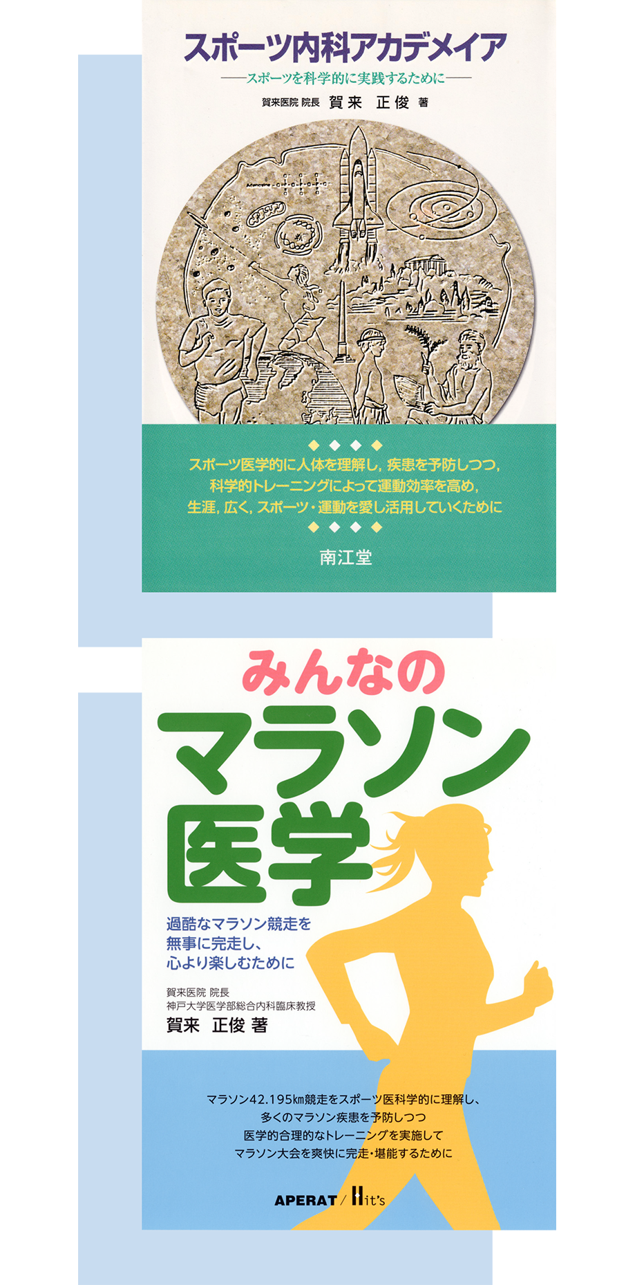 1998年、賀来正俊が書いた、おそらく世界で初めてのスポーツ内科学専門の書です。一般の方々にも理解されやすいように工夫しました。広大なスポーツ学やスポーツドキュメンタリーなどが満載されスポーツ科学用語集も付いています。2006年秋、一部改定増版され本院で販売しております。(2500円)